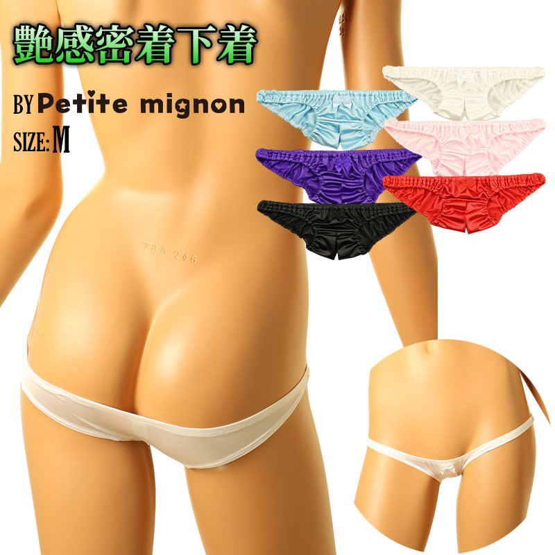 プチミニョン シルクのような艶肌触り!フェリカ生地使用・セクシー股割れフルバックショーツ/極浅インゴムタイプ 116038