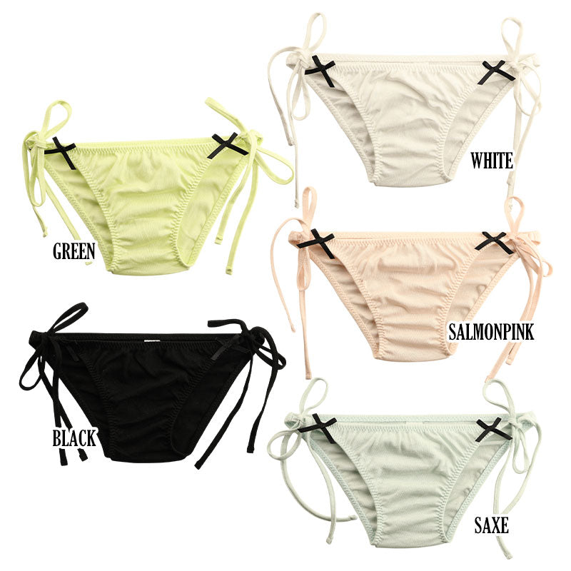 ラ・ポーム コットン生地 三角ブラ ハイパーローライズデザイン サイドリボン 脇ヒモ フルバックショーツ 上下セット BS003