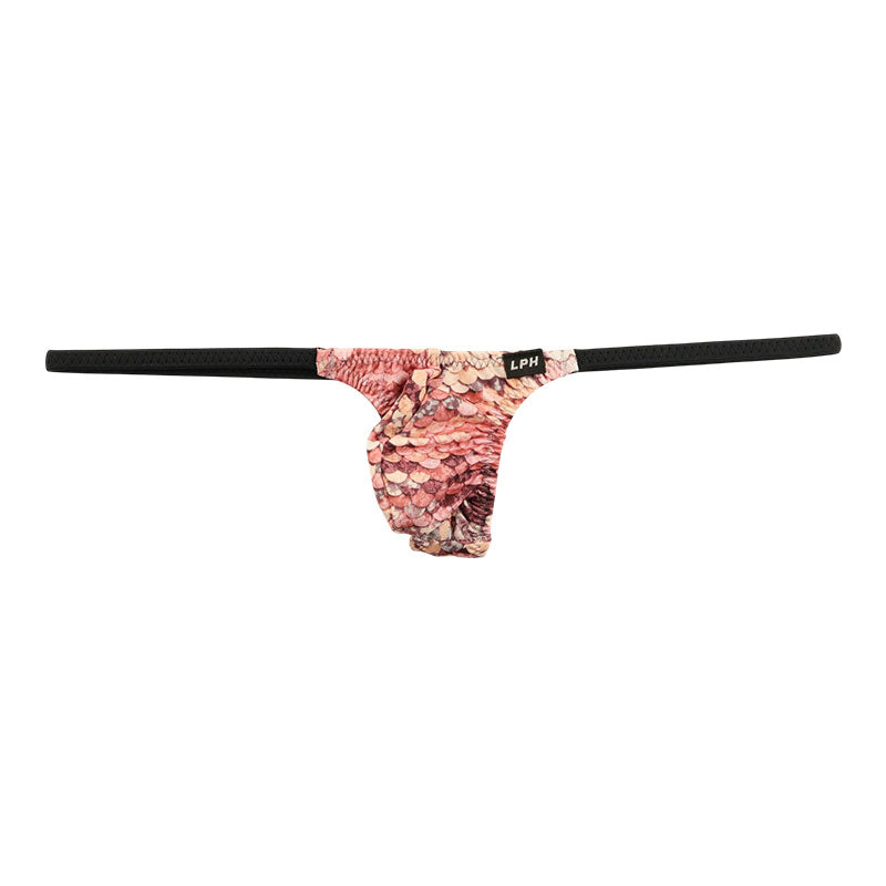 メンズ Tバックビキニ スパンコールプリント ストレッチ生地 脇細デザイン 723047