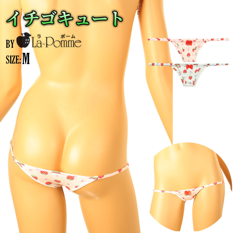 ラ・ポーム Tバックショーツ ハイパーローライズ コットン 極小 イチゴ柄 115061